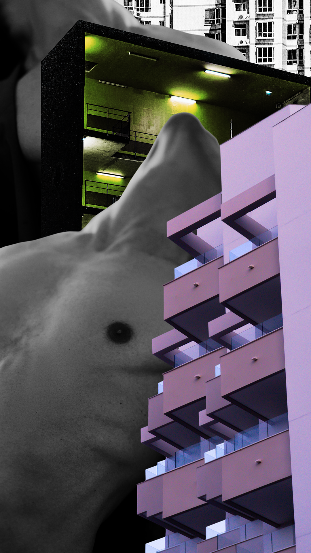 Themes such as distress, impassable barriers or being caught are taken up in the photo collages.